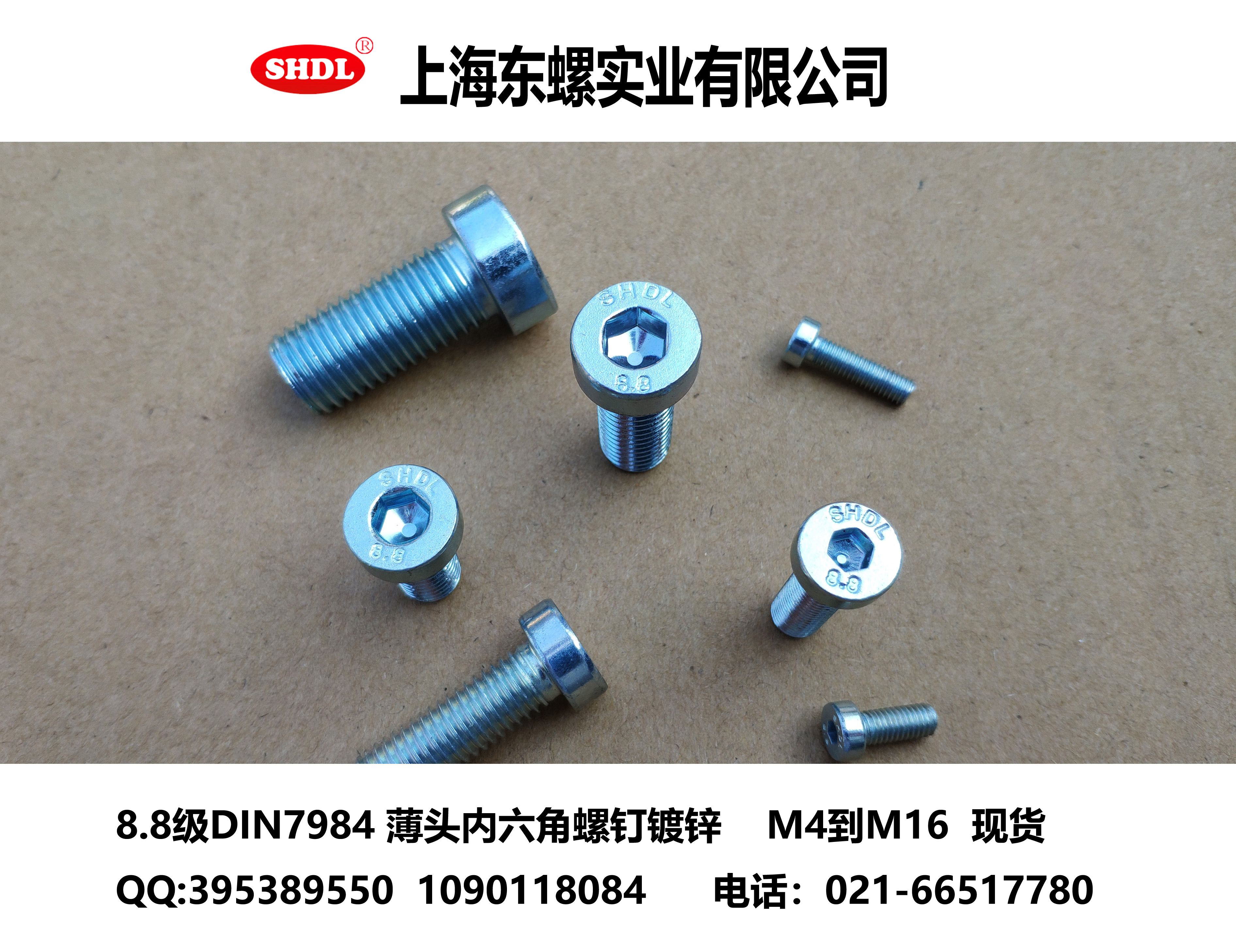 8.8級DIN7984薄頭內六角螺絲,規格:M3-M30,表面處理:發黑,蘭白鋅等.